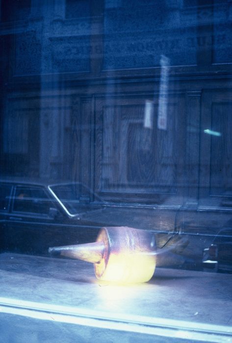 Tzivelos’ work was primarily site-specific, composed of installations that engaged in dialogue with – or functioned as containers for – self-illuminated elements. Plasterboards or expansive metal surfaces, often rusted, interacted with lamps that diffused light through coatings, initially wax and later resin. The wax coatings produced a thick yellow, while the resins, varying in thickness, yielded a spectrum of red hues. Collectively, the light orchestrated by Tzivelos – as recounted by Christoforos Marinos and Bia Papadopoulou – activated an alchemical palette of symbolism and atmosphere, giving form to the idea of transmutation.
