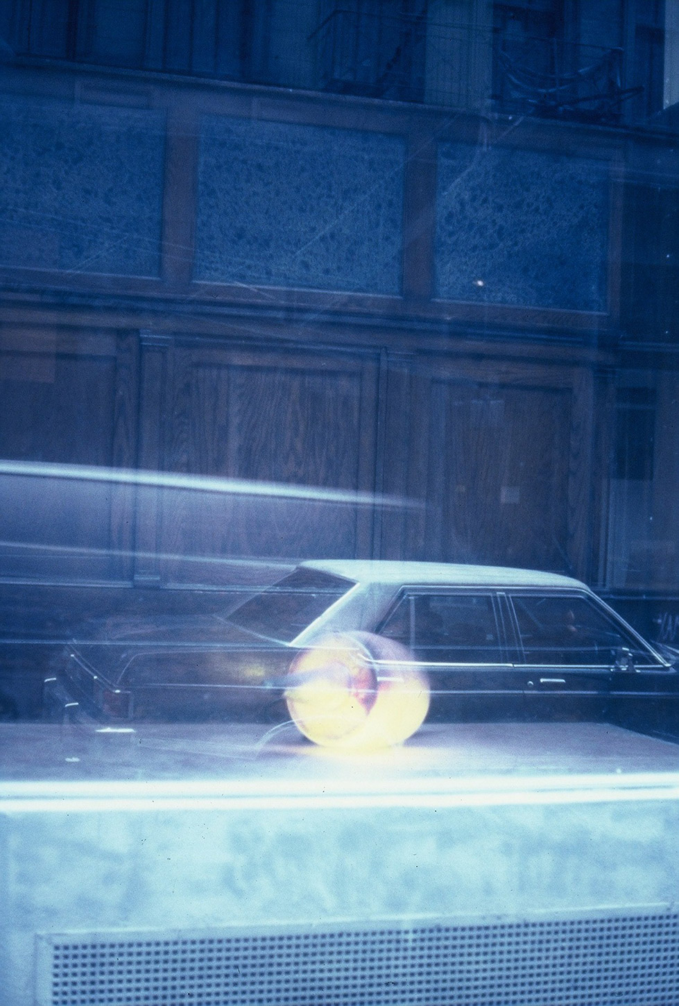 Another series of his works, consisting of opalines on which Tzivelos intervened with objects or stencils, and coloured lamps composing spherical projection screens or a form of shadow theatre, could be thought of as sculptural extensions of a cinematic experience. A Greek topography emerges in these installations, in the commonplace lamps that once populated arcades. Yet other geographies are integrated as well: elements derived from film noir, insects foreign to Greece, and other objects originating elsewhere.
